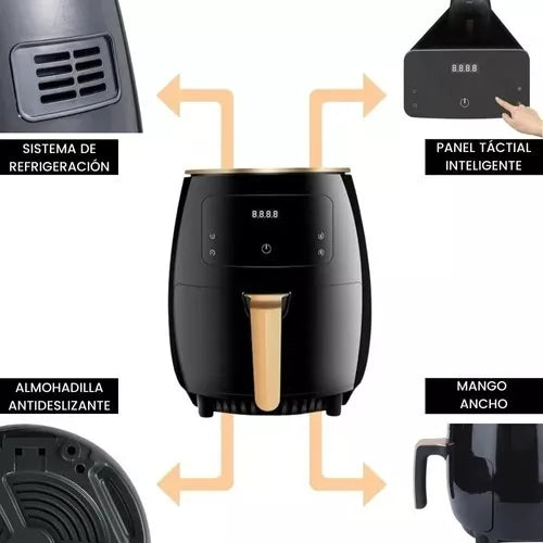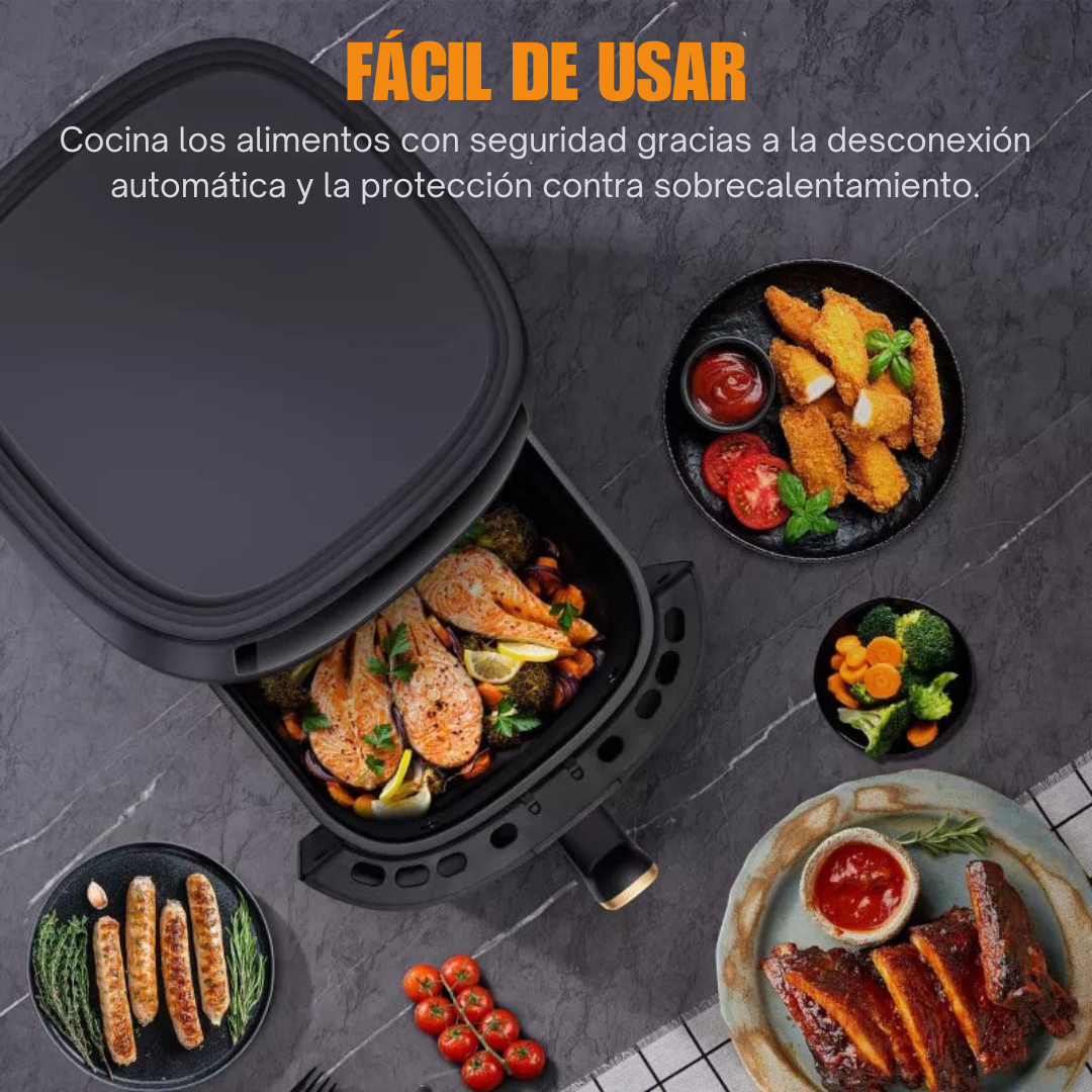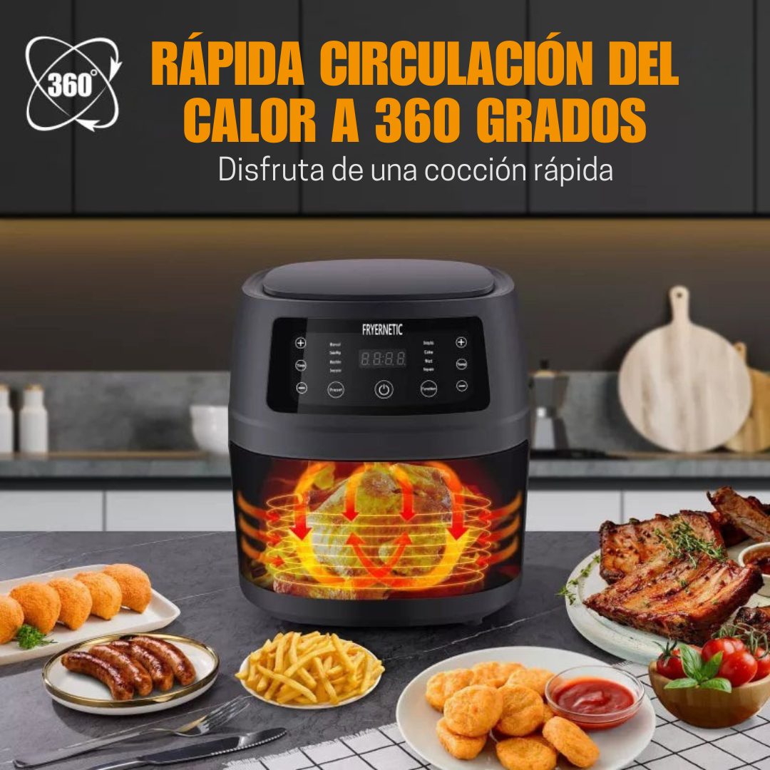 Esta capacidad freidora de aire utiliza aire supercaliente para cocinar alimentos de manera rápida y saludable con menos calorías.