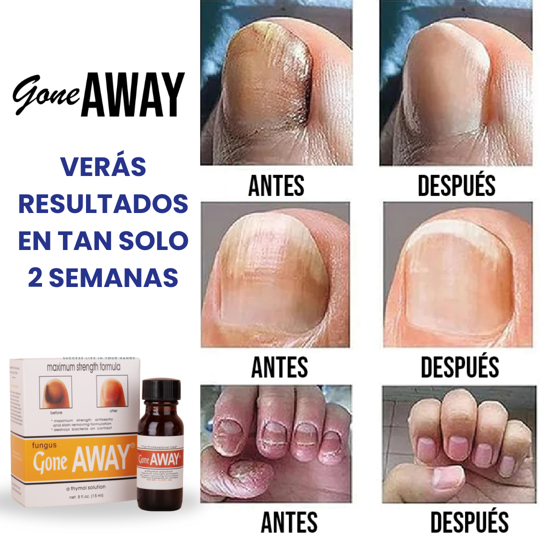 Si has probado múltiples tratamientos sin resultados duraderos, Gone Away® es la solución que estabas esperando. Este tratamiento de última generación combate la onicomicosis, el pie de atleta y otros problemas comunes de las uñas, devolviéndote la salud y la confianza que mereces